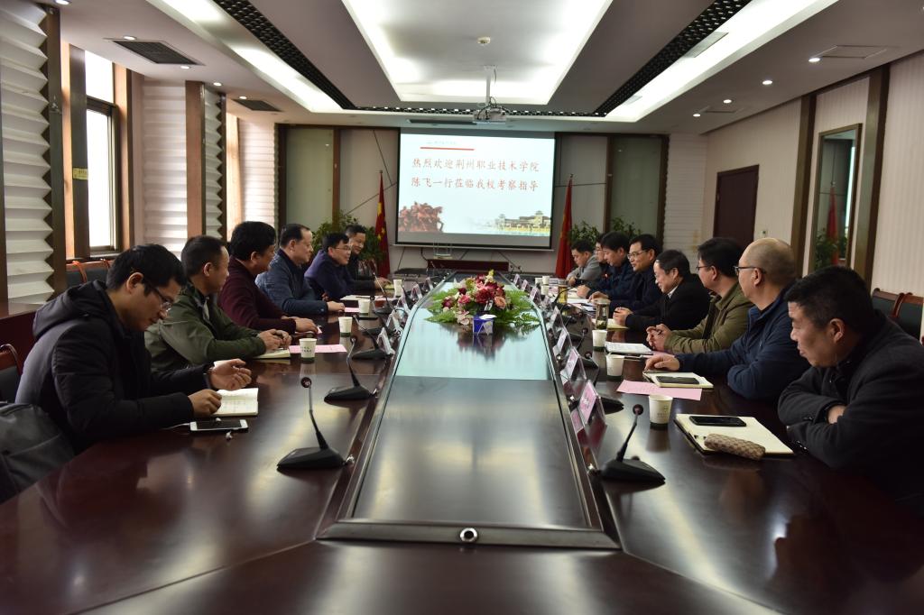 (创新创业教育学院 通讯员 姚歆)3月6日下午,荆州职业技术学院党委书记陈飞、副校长刘明皓等一行五人到太阳集团城网站2018考察交流。校党委书记唐峻、副校长王为一和创新创业教育学院、校团委、教务处、招生就业处等部门负责人接待陈飞一行。双方在致远楼第三会议室就创新创业教育工作进行座谈交流。