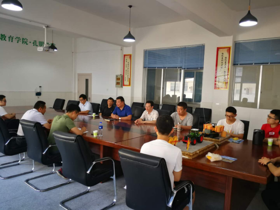 2019年7月2日,中国航天科技集团有限公司辽宁航天凌河汽车有限公司市场营销部王超部长、海外市场销售部洪为男经理一行来校洽谈产学研合作与大学生科技成果转化。创新创业学院院长唐明生、副院长张建华,机械工程学院院长刘克非、院长助理吴何畏等出席。《履带式草捆捡拾转运车》研发团队指导教师吴何畏、李小昱,学生刘明泽、刘浩通等;《前置式弹齿指盘搂草机》研发团队指导教师王友、王为,学生李海金、鲁武阳等参加了合作洽谈。