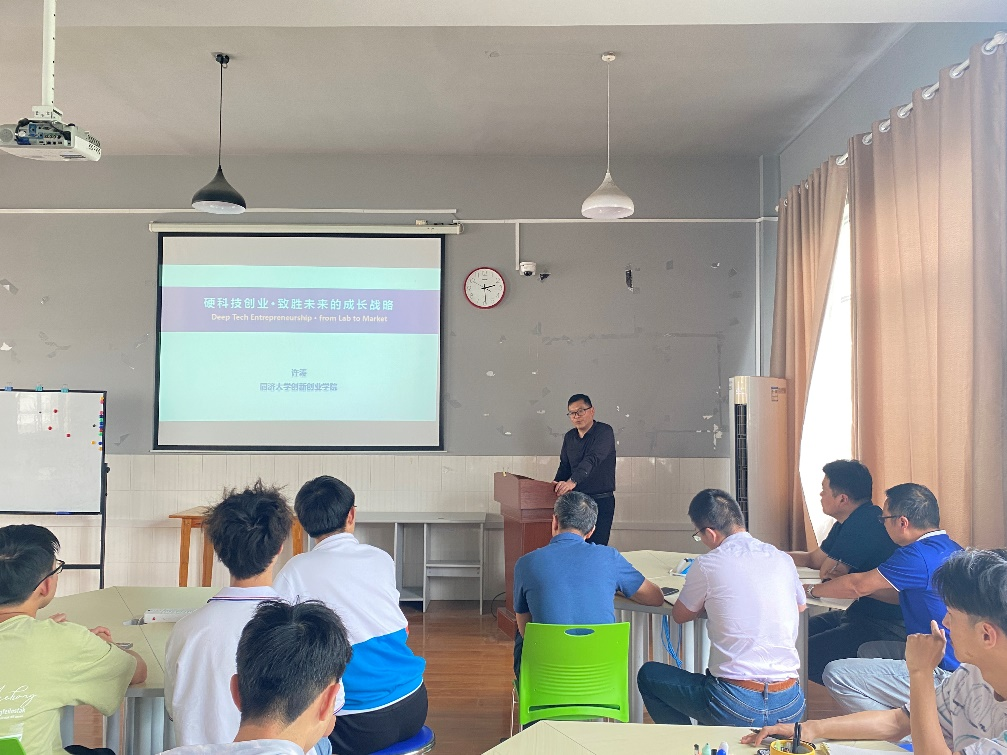 许涛教授指出,目前硬科技的代表性领域包括光电芯片、人工智能、航空航天、生物技术、信息技术、新材料、新能源、智能制造等,科创班学生要关注科技革命,了解新兴产业。许涛教授强调,企业的本质是创新,企业家的本质也是创新,而创新的灵感来源于生活,在学习的过程中,同学们应该多观察多思考,利用课余时间增加阅读量,了解前沿科技,拓展知识面进而激发灵感。许涛教授表示,作为硬科技创业者需要有创造力、充满活力且具备吃苦耐劳等品质。